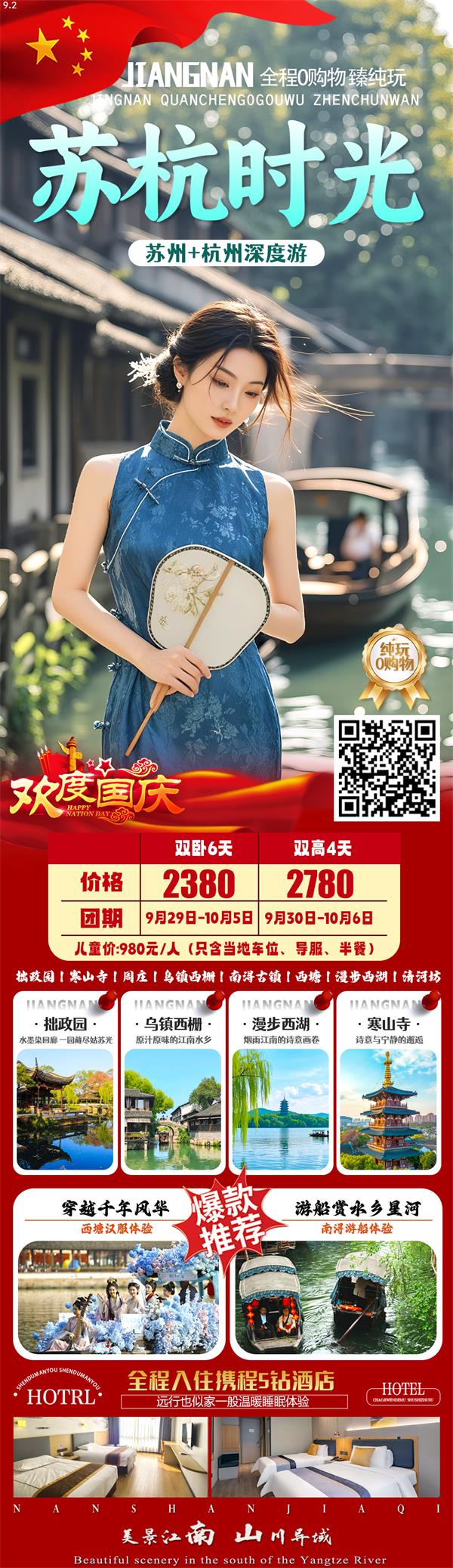 江州—【苏杭时光】苏州杭州双卧6日游/双高4日游