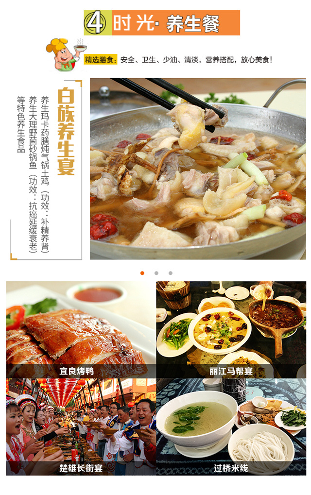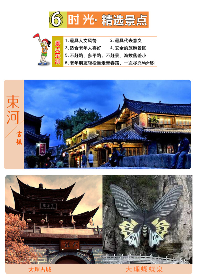 4、景区内电瓶车、滑道车属景区内另行付费的小交通项目,属于客人自愿消费,不购买的客人须步行。行程相关的景区内小交通如下:大理古城电瓶车35元/人,大理古维费30元/人。5、自由活动期间的餐食费和交通费。