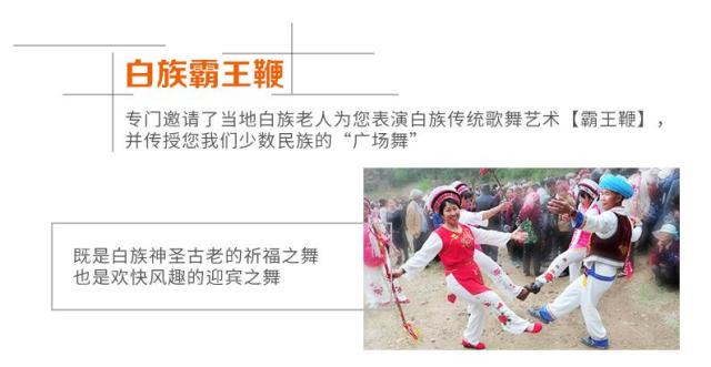酒店早餐后乘车前往【大理蝴蝶泉公园】(游览时间90分钟),大理蝴蝶泉公园内位于苍山云弄峰下的绿树丛中,距大理古城24公里,原有景观加上近年来不断扩建,方圆数百亩。公园以"蝴蝶泉"而闻名。我们会【独家赠送您一张民族服装集体照】,作为您对这次云南之行的永久纪念。之后前往【白族民居】(游览时间90分钟),欣赏白族【三道茶歌舞表演】,在白族一苦二甜三回味的最高待客礼仪中回味人生真谛,并参观白族手工纯银制品,了解白族高超手工艺制作技术,您带可以带回您心仪的作品做为云南之行最好的纪念和馈赠亲友的礼品;之后乘车前往【洱海公园】(游览时间20分钟),给您在洱海边美美的自拍留做美好的纪念,然后前往楚雄,晚餐品尝楚雄当地【长街宴】欣赏彝人古镇篝火晚会。后入住楚雄酒店结束一天愉快的旅程。
