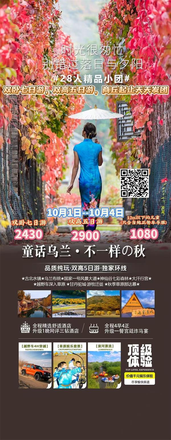 北京--【童话乌兰】古北水镇、坝上草原、甘丹驼城景区、草原专属越野车、草原漂流、神仙谷.七彩森林公园、大汗行宫外观(0购物0自费)、双卧7日游、双高5日游、商丘