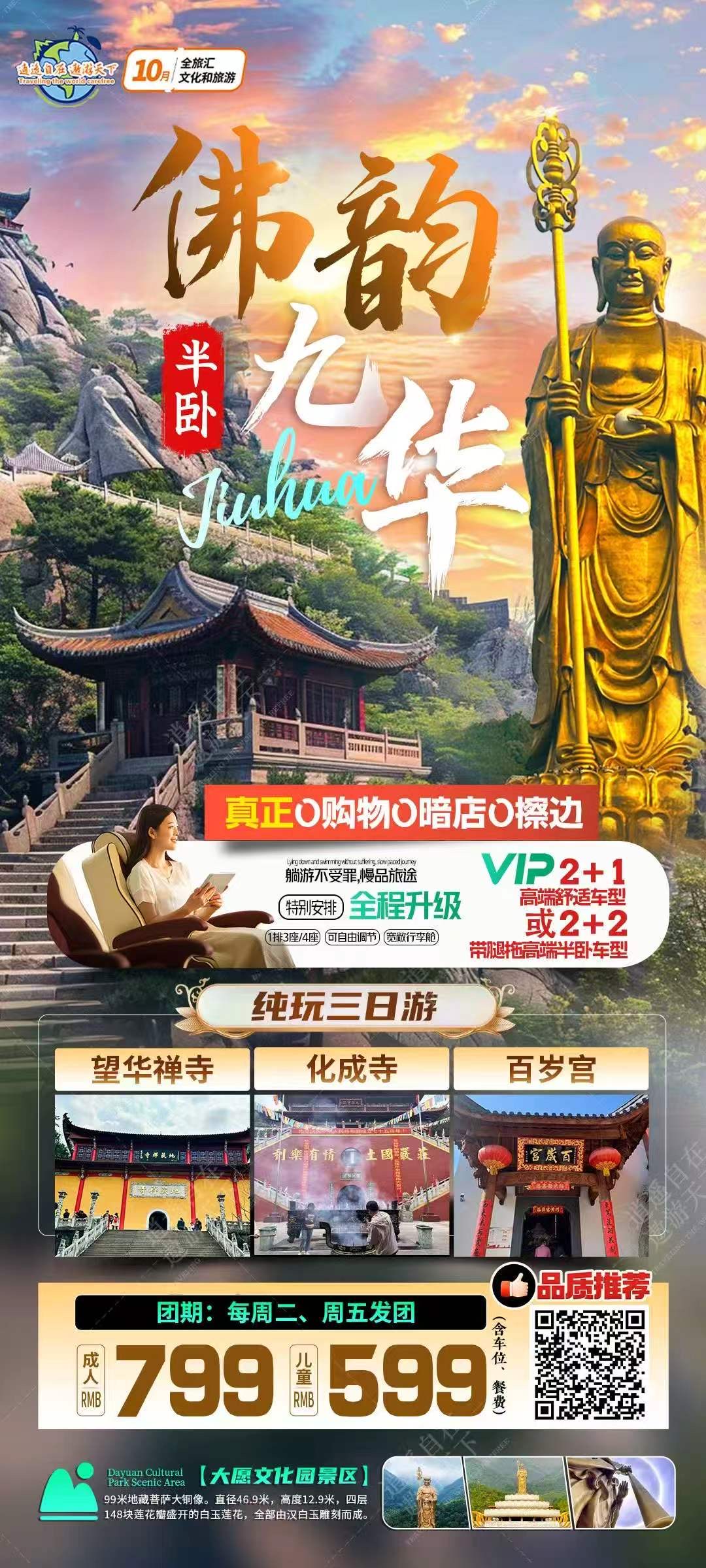 安徽--0购物【半卧-佛韵九华】纯玩三日游