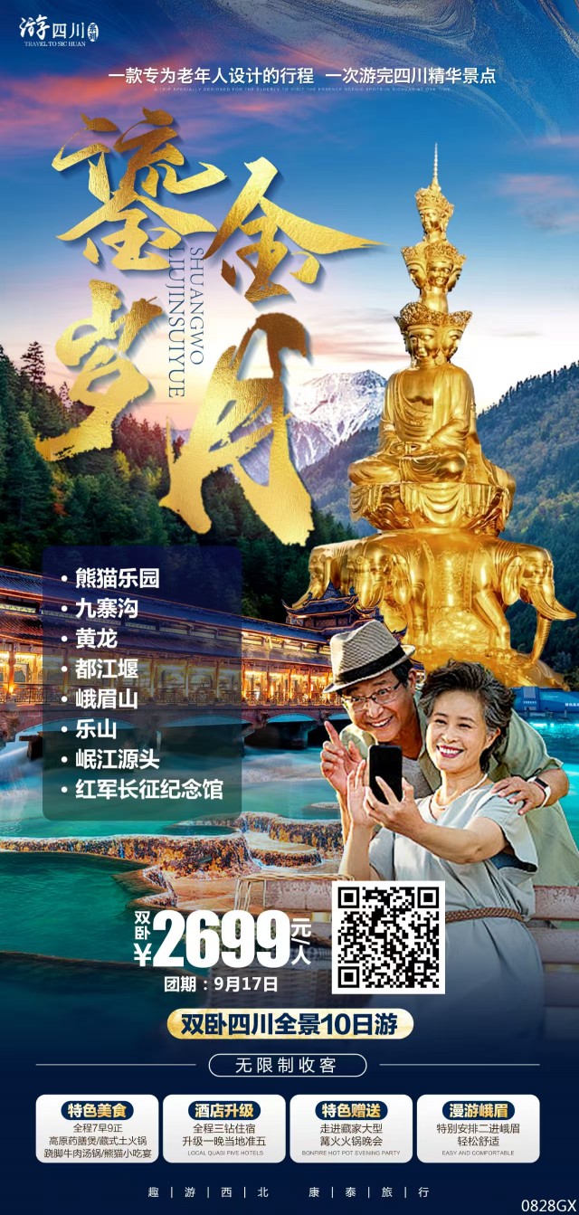 四川--【鎏金岁月】九寨黄龙熊猫乐园乐山峨眉全景双卧10日游