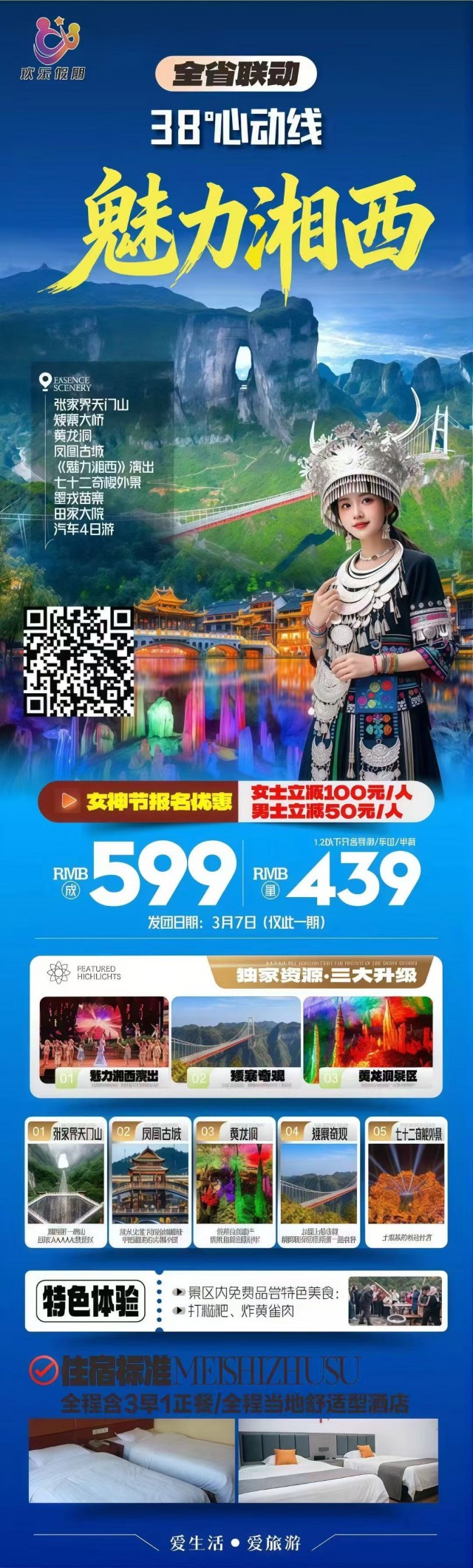 湖南--【38°心动线-魅力湘西】张家界天门山丨凤凰古城丨矮寨大桥丨黄龙洞丨《魅力湘西》演出丨墨戎苗寨丨七十二奇楼外景精品四日游