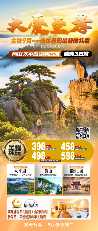 安徽--【大爱至孝】黄山。太平湖,徽州古城三日游